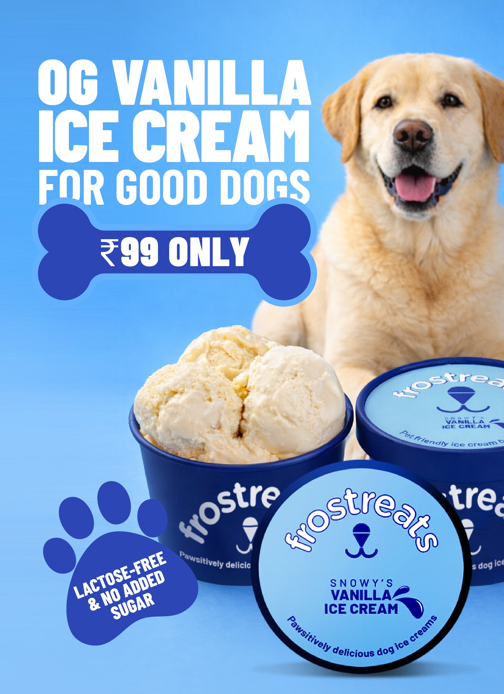 At Frostreats we use 100 percent lactose free milk, keeping in mind the harmful effects of lactose on dogs specifically pups in the long run.